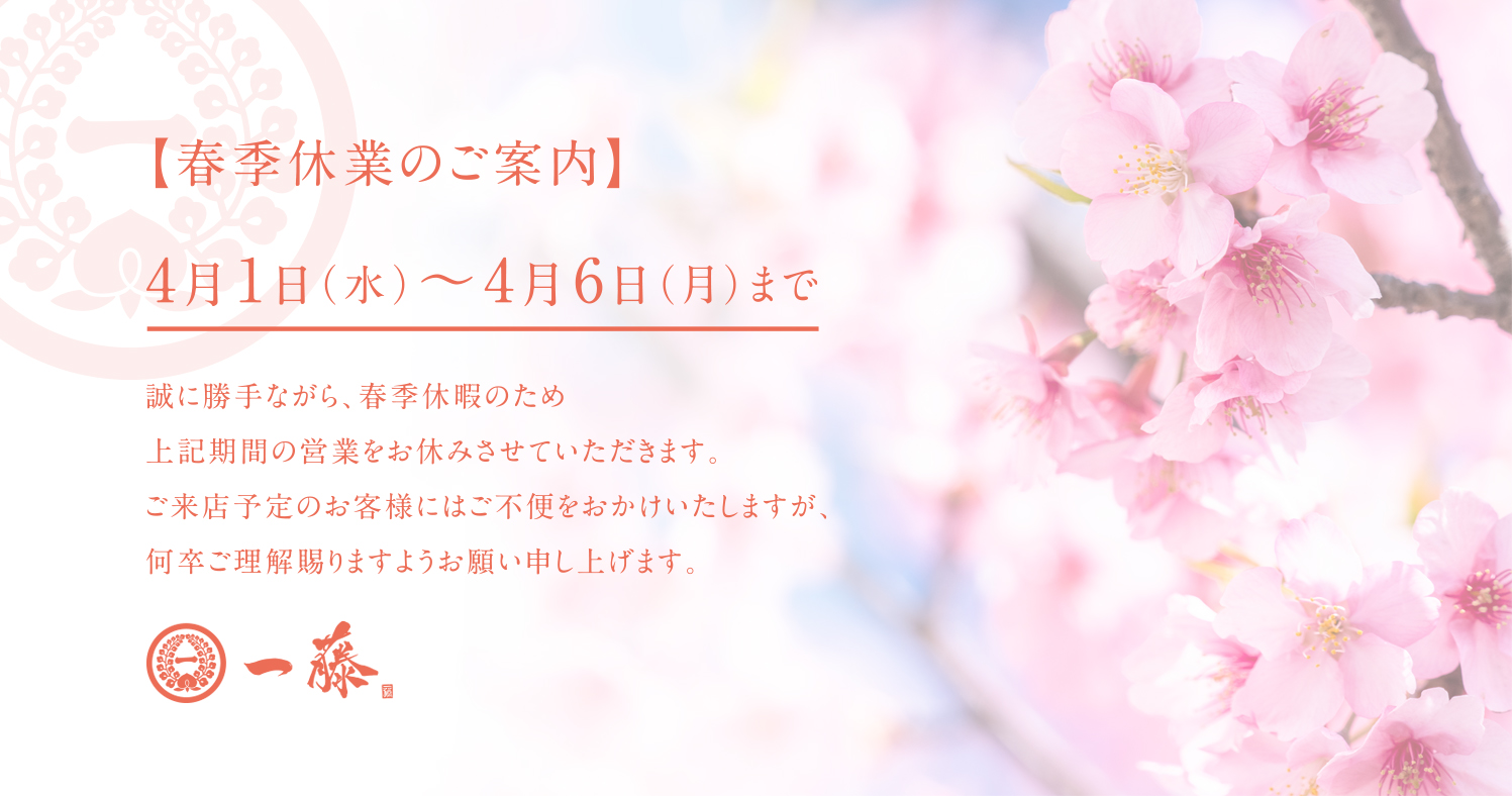 - 2026/03/8 4月1日(水)~4月6日(月) 休業のお知らせ