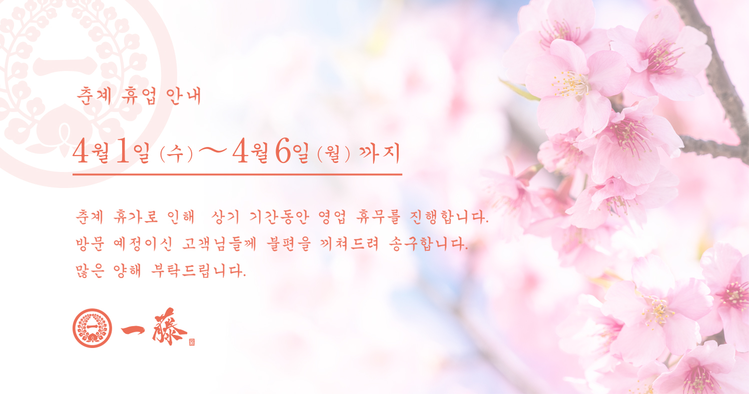 - 2026/03/8 4월1일(수)~4월6일(월) 휴무 안내